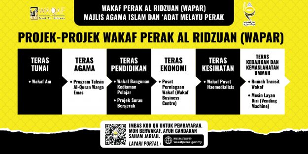 Wakaf Perak Al Ridzuan (WAPAR), under the Perak Islamic Religious and Malay Customs Council (MAIPk), calls upon all Muslims to support the development of education through waqf as a continuous charitable investment. Your contributions will support the following waqf projects: ✅ Waqf for Religious School Development Construction and upgrading of essential facilities such as dormitories,…