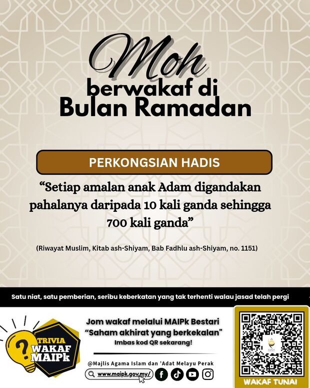 Setiap amalan digandakan pahalanya sehingga 700 kali ganda. Ramadan bukan sekadar bulan ibadah, tetapi bulan peluang untuk melabur saham akhirat yang berpanjangan.