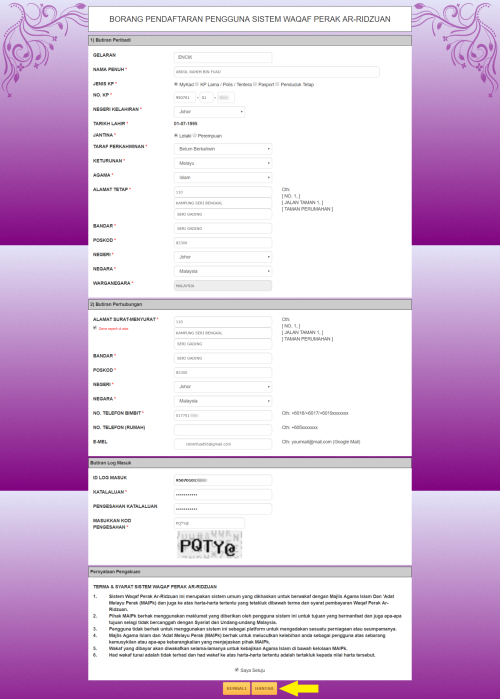 (Nota : Jika anda pernah mendaftar di dalam sistem, anda hanya perlu mengisi ruangan No. Kad Pengenalan sahaja dan semua maklumat anda akan dipaparkan secara automatik)