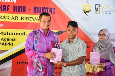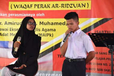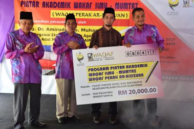 Majlis perasmian ini telah disempurnakan oleh En Suhaimi bin Yusoff (Pengurus Besar Bahagian Pengurusan dan Pembangunan Mal dan Wakaf) dan turut dihadiri oleh Tuan Hj Abdul Rahman Najib bin Hj Mohd Noor, Ketua Pegawai Eksekutif PPSM. Didalam ucapan tersebut, beliau memaklumkan bahawa pihak MAIPk telah memberi sumbangan wakaf tunai sebanyak RM 20,000.00 secara one-off bagi pelaksaan Program Pintar Akademik Wakaf Ilmu – Mumtaz di mana program ini adalah salah satu daripada Program Mumtaz di bawah Wakaf Perak Al-Ridzuan.