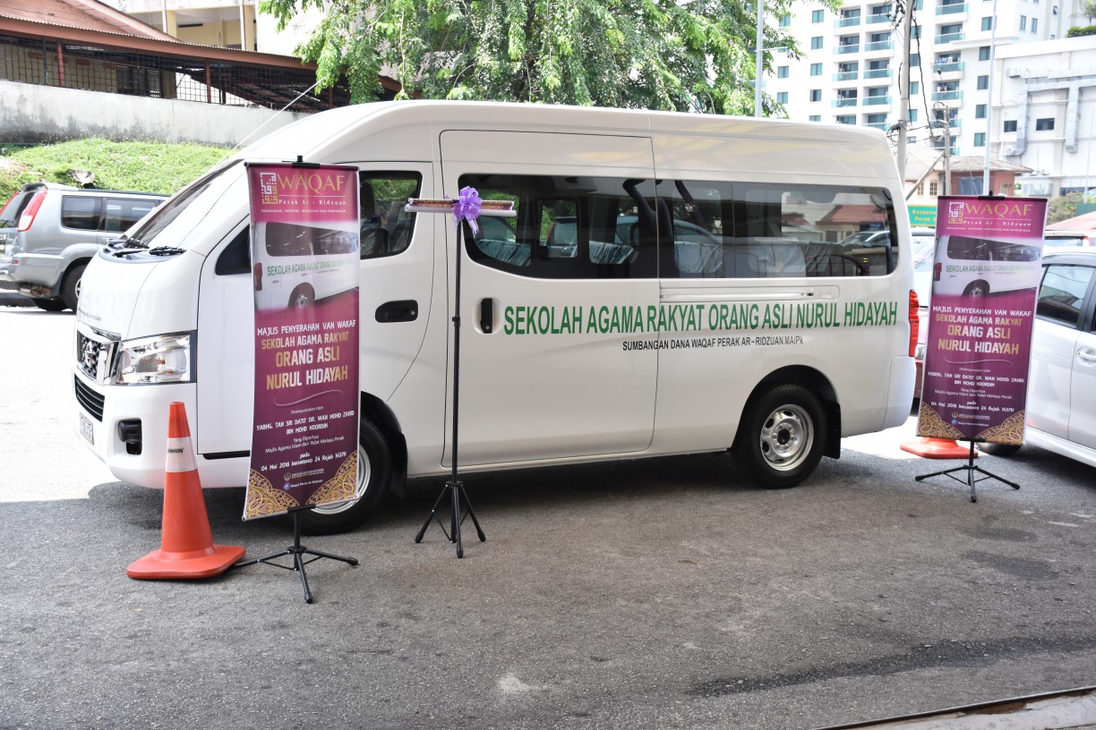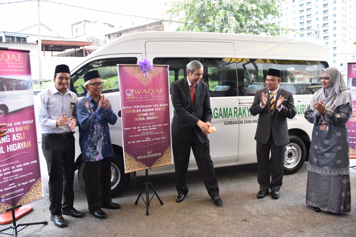 IPOH, 4 Mei 2016 – Yang Dipertua Majlis Agama Islam dan Adat Melayu Perak, YABhg. Tan Sri Dato’ Dr Wan Mohd Zahid Bin Mohd Noordin telah menyempurnakan Majlis Penyerahan Van Wakaf kepada Sekolah Agama Rakyat Orang Asli,Kg Kenang Sg.Siput di Kompleks Islam Darul Ridzuan Ipoh. Van tersebut adalah sumbangan dari dana Wakaf Perak Al Ridzuan MAIPk yang telah dilancarkan oleh DYMM Paduka Seri Sultan Perak Darul Ridzuan pada 07 April 2016 yang lalu.